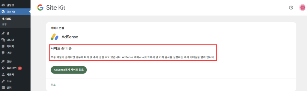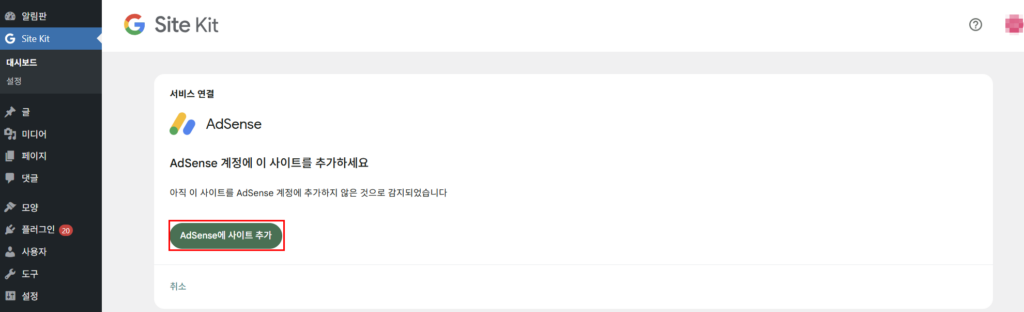 3.워드프레스 Site Kit by Plugin을 이용한 구글 애드센스 설정 및 확인 방법