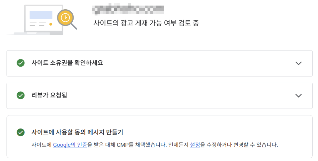 그럼 이제 ‘사이트 준비 중’이라는 문구가 보인다. 이제 구글 애드센스에서 내 사이트가 애드센스를 사용하기에 적합한지 검토를 진행 중인 상황이다.